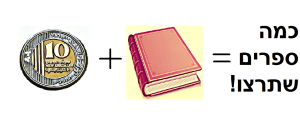 תמורת 10 שקלים בלבד (כיסוי עלויות) וספר אחד (לפחות)*, תוכלו לקחת בחינם כמה ספרים שתוכלו לסחוב.