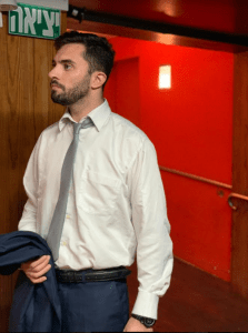 בחירת החלל של ההצגה הזו מחזקת עוד את הנקודה הזאת, וראוי לשבח את הבמאי אמיר זלוטר והמעצבת נטע קנוניץ' על כך. ב"הבימה 4" אפשר להעלות הצגות בהרבה כיוונים, אבל הכיוון שהיוצרים בחרו הוא כיוון שעוד לא ראיתי. הקהל פונה אל הצד בו נמצאות דלתות הכניסה וההצגה מתקיימת במסדרון המעבר בין שתי הדלתות. זה מרים את הריאליזם של ההצגה לכדי 100%, כי זה פשוט נראה כמו המיקום האמיתי ביותר שהעלילה יכולה להתרחש בו. אין תפאורה מסובכת שבאה לחקות דירה, זה פשוט מסדרון אמיתי.