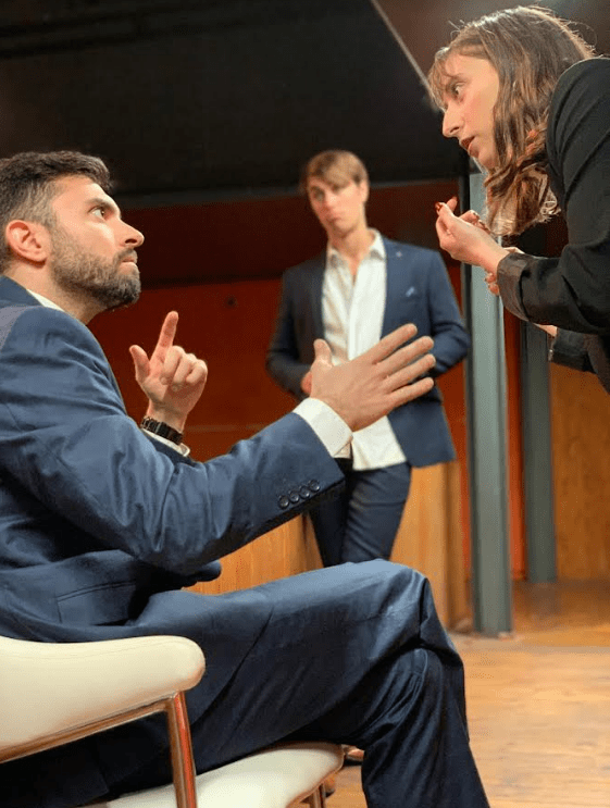 הריאליזם הזה עולה מדרגה נוספת כשסצנה שלמה של ההצגה מתקיימת בתוך חדר ישיבות שנמצא מאחורי המסדרון, ובאופן חבוי לגמרי מעין הקהל, שרק שומע מבעד לחלונות בחדר מה קורה. וזה כמובן בלי התפקיד הנפלא של אשת הניקיון שמוסיפה עוד רובד, מעט על הצד הקומי, לריאליזם.