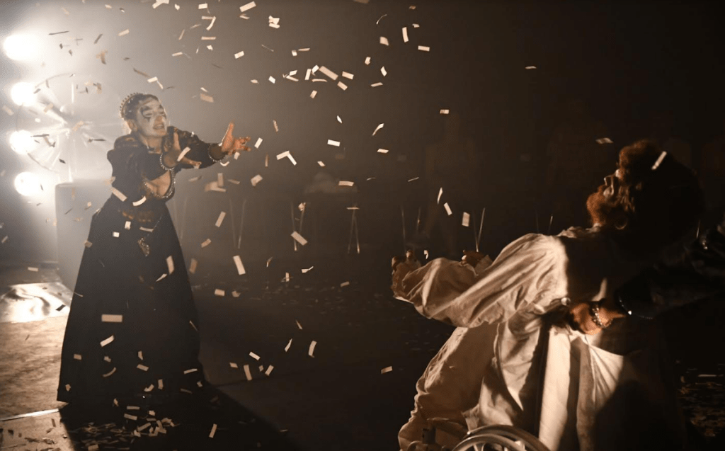 לבסוף, מה שכבש אותי בהצגה הזאת והצליח לגעת בי, עד דמעות ממש, הוא המונולוג של האישה החוקית, שנותרת עם בעלה המלך רגע לפני מותו. הוצפתי ברגשות ובזיכרונות על היקרים לי שהלכו לעולמם. אך, לצד זאת, לא לגמרי הבנתי את הסוף: לבמה מוכנס תוף אשר המלך הגוסס, או שמא המת, מכה עליו בעוז. האם בניגוד למסר במהלך ההצגה, הוא יוצא מן העולם בקול תרועה רמה? האם הוא מבקיע שערי שמיים? לבמאית הפתרונים.