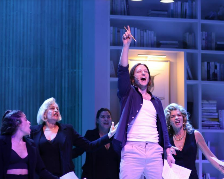 בד בבד, ברקע ניצבות האימא האשכנזית שלו (מיקי קם) והאימא המזרחית שלה (אורנה דץ). עכשיו, ברצינות "הבימה"? כמה סטראוטיפים אפשר לדחוף בבן אדם אחד, תנו לאורנה דץ לנשום, בחייאת ראבאק. ומה זה מאבקי העדות המוזרים האלה, די, זה פאסה, מה גם שזה אף פעם לא מדובר בעדינות הנדרשת, בטח לא כאן, מחזמר בו אורנה דץ לבושה בחצאית מנומרת ועונדת צמידי זהב, שרוצה לקרוא לנכד שלה מכלוף, כי זה שם קדוש בגימטריה.