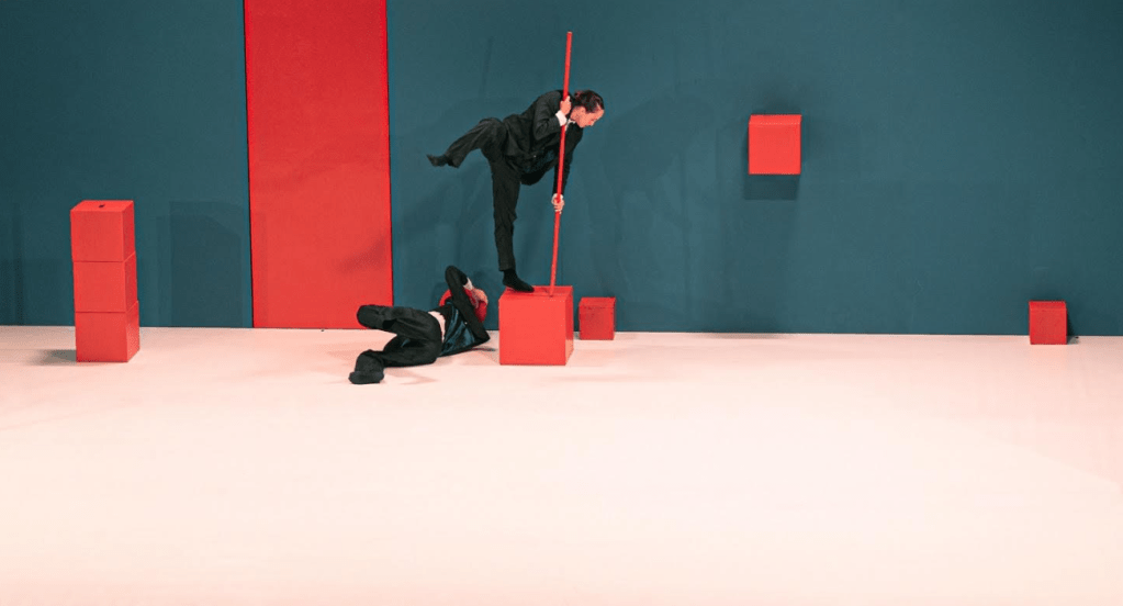 למרות שזוהי תכנית פעולה מעניינת מאוד ואמיצה למדי, אותה חוויה של אימה קיומית שחוויתי כאשר צפיתי בפישזון מביט אל הטלפון שמצלצל בתחילת המופע, התפוגגה מרגע כניסת הרקדניות והרקדנים. אמנם, לרגעים אחדים, כמו הרגע שבו פישזון מכניס אל הבמה שתי רקדניות ארוזות בניילון והן מתחילות את הריקוד בעודן ארוזות, פירוק המנגנון ושינוי התמונה הלם בליבי בעוצמה. גם כאשר הריקוד הופך לכדי ריקוד קבוצתי וכל הבמה מתמלאת מן הריקוד הזה שמתפרק גם הוא בתוכו, הרגשתי טלטלה גדולה. אך לאורך רוב המופע עשרות ואולי מאות הדרמות הקטנות והאנושיות שהתרחשו על הבמה, התקבלו אצלי בשוויון נפש. הפער בין הדרמטורגיה המשוכללת, הריקוד המהפנט, העיצוב המוקפד ובעיקר הדיוק בחלק המשחק שבתחילת המופע, לבין חוויית הנפש הפושרת משהו שיצאתי איתה מן המופע הטרידו אותי זמן רב. אני סבור כי על מנת שמנגנון תנועתי שמתפרק יזיז משהו אצל הצופה הוא נדרש להתקיים במאה אחוז גם כאשר משך הקיום שלו קצר מאוד. כמו כן, תמונה בימתית שמתפרקת חייבת להיות תמונה ברורה כדי שהשינוי שלה יהיה שינוי של תמונה ולא תנועה סתמית של רקדנית או רקדן וקוביות עץ. לעומת דימויים שכן מצליחים להעביר את הפירוק הזה, לדוגמה כשהרקדניות עובדות יוצרות צורות מהפנטות לרגע קט עם ספלים אדומים ומפרקות ועוברות לריקוד, בעבודה עם קוביות העץ שמשנות את צורת הבמה, קשה לראות את החזקת קוביות העץ כחלק מהתפאורה.