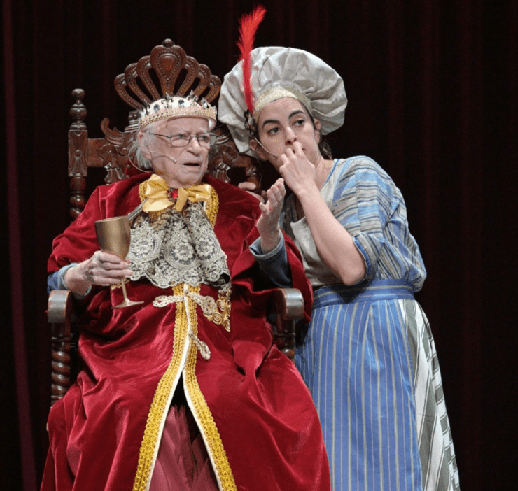 את מהלך ההצגה מנהל בודו כמו שהוא יודע – בקלילות, במשחק נקי והומור עצמי. הוא מגלם את המלך בצורה נפלאה, ויודע ליצור דמות מדויקת, לעצב את התחושות באמצעות ממזריות וחיות לאורך כל ההצגה. אופיר וויל נהדר בתור מרדכי היהודי ואנדריי קשקר הוא המן הרשע נפלא. יהונתן רוזן נפלא בתור הבמאי ההוליוודי, סיוון קינר קיסינג'ר מוסיפה היטב לקסם המיוחד של ושתי, ליאור בן יהודה בעלת חינניות כובשת בתפקיד אסתר. שריאל יוסף בתפקיד הנכדה של בודו, משלימה במשחקה הטוב את התמונה.